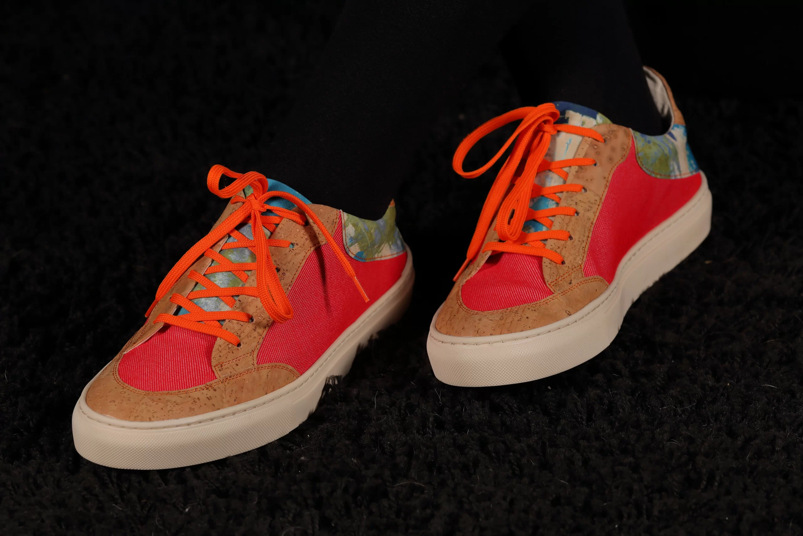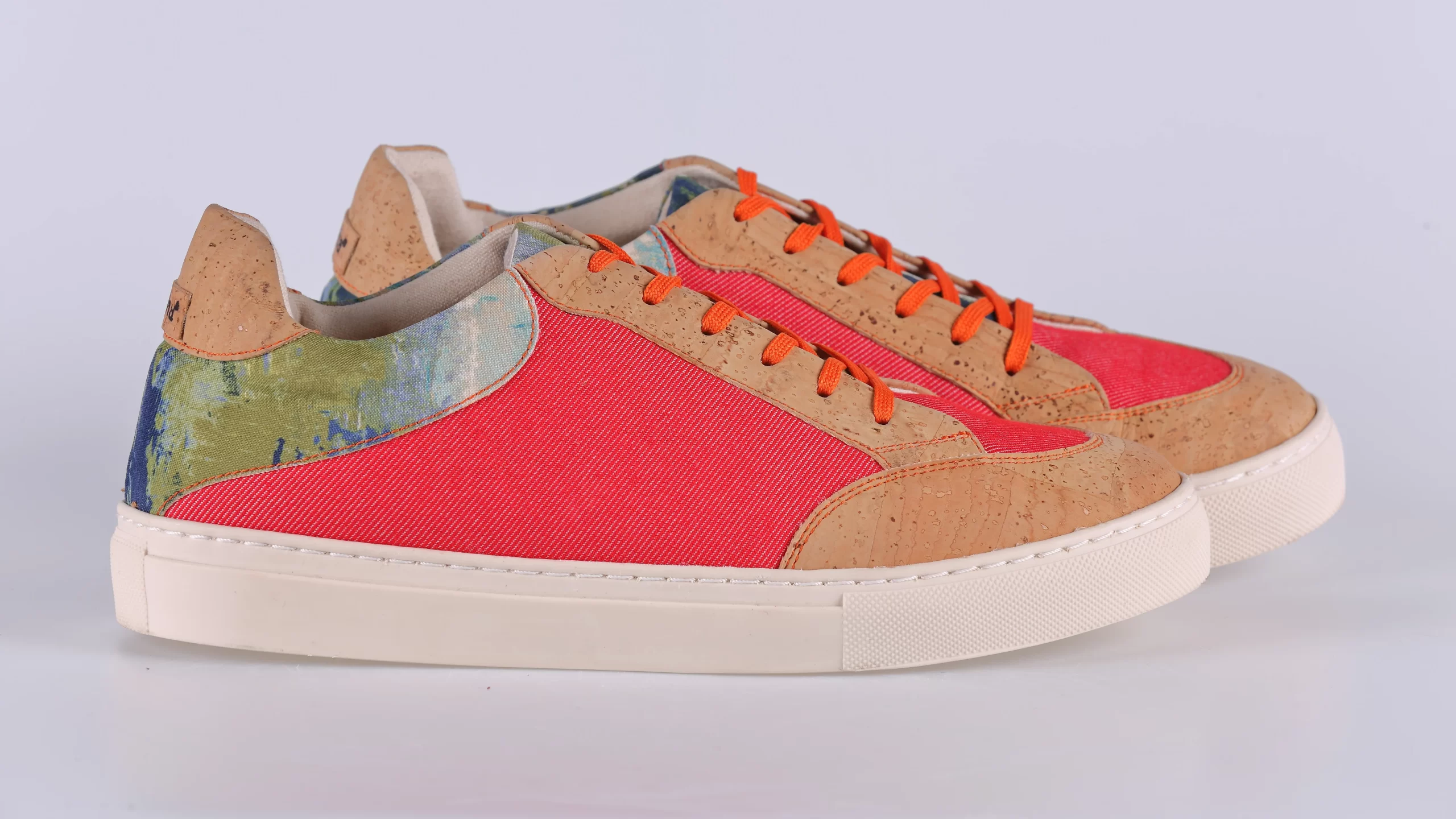 Red recycled luxury sneakers blend standout style with sustainable innovation, named Nognana from our Atlantis Collection. Handcrafted based in 100 years of craftsmanship experience in Portugal from recycled materials, these trainers offer a bold statement with minimal environmental impact.